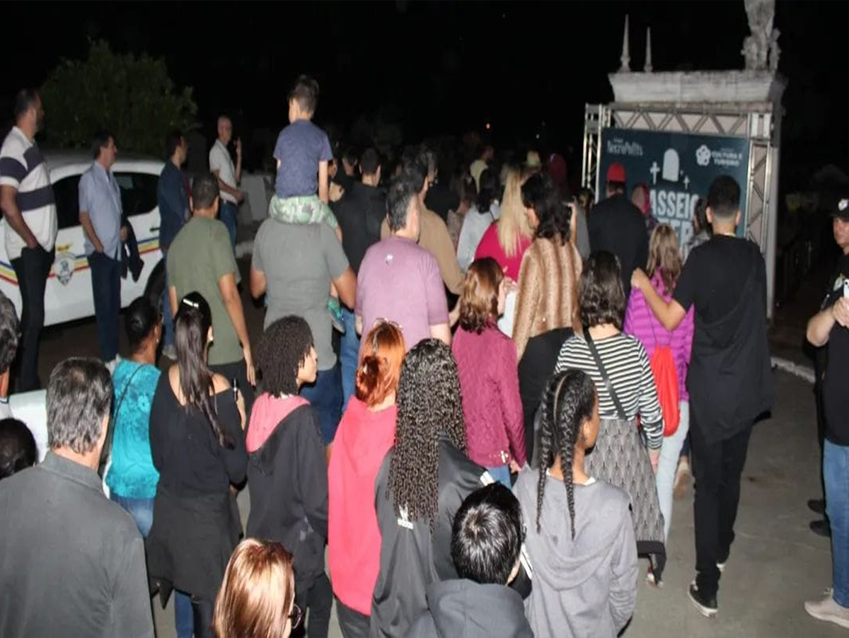![]() ![]() ![]() Muitas pessoas participaram do Passeio de Arte Cemiterial realizado pela Prefeitura, por meio Secretaria de Cultura e em parceria com o Grupo Necropollis, na noite de sexta-feira (26). O evento foi uma das ações da programação da 21ª Semana Nacional de Museus, coordenada pelo Instituto Brasileiro de Museus (Ibram), realizada em todo país. Guiados por entre túmulos do Cemitério Ana Rosa de Paula os participantes se deparavam com atores do Grupo caracterizados como personagens e contando histórias sobre pessoas que deixaram sua marca na história de Jahu. Eles passaram pelo túmulo da caveirinha, Elza Munerato, e de João Ribeiro de Barros entre outros. Os visitantes também puderam apreciar uma apresentação musical. Com o evento solidário foram arrecadados alimentos que serão doados à entidades assistenciais do município. |